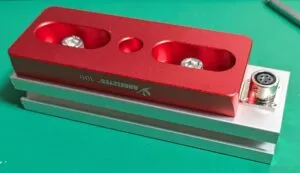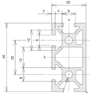 寸法こんな感じなんですが、この真ん中の中空部分の幅12mmというのが実に都合よくて、アリガタプレートとモーターの接続端子を固定できそうなんです。